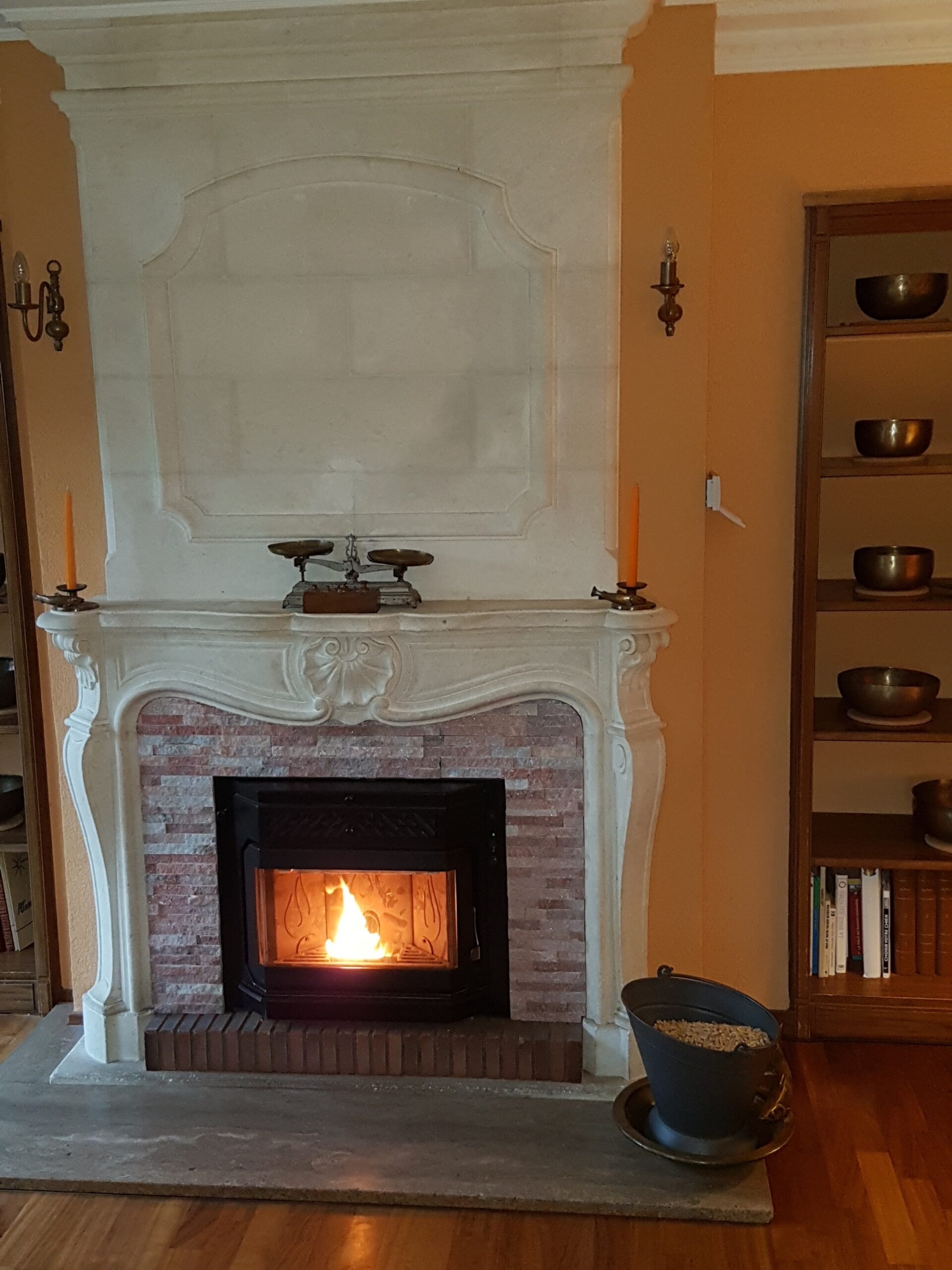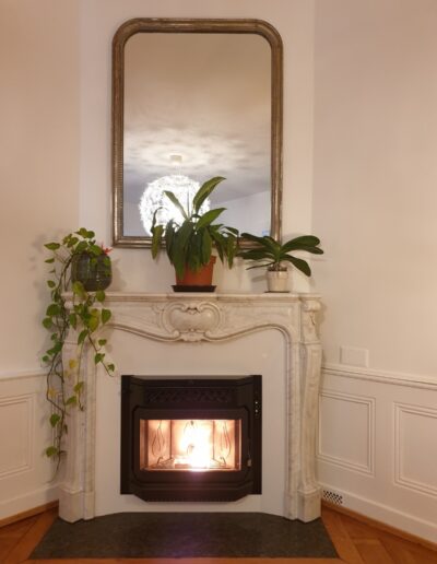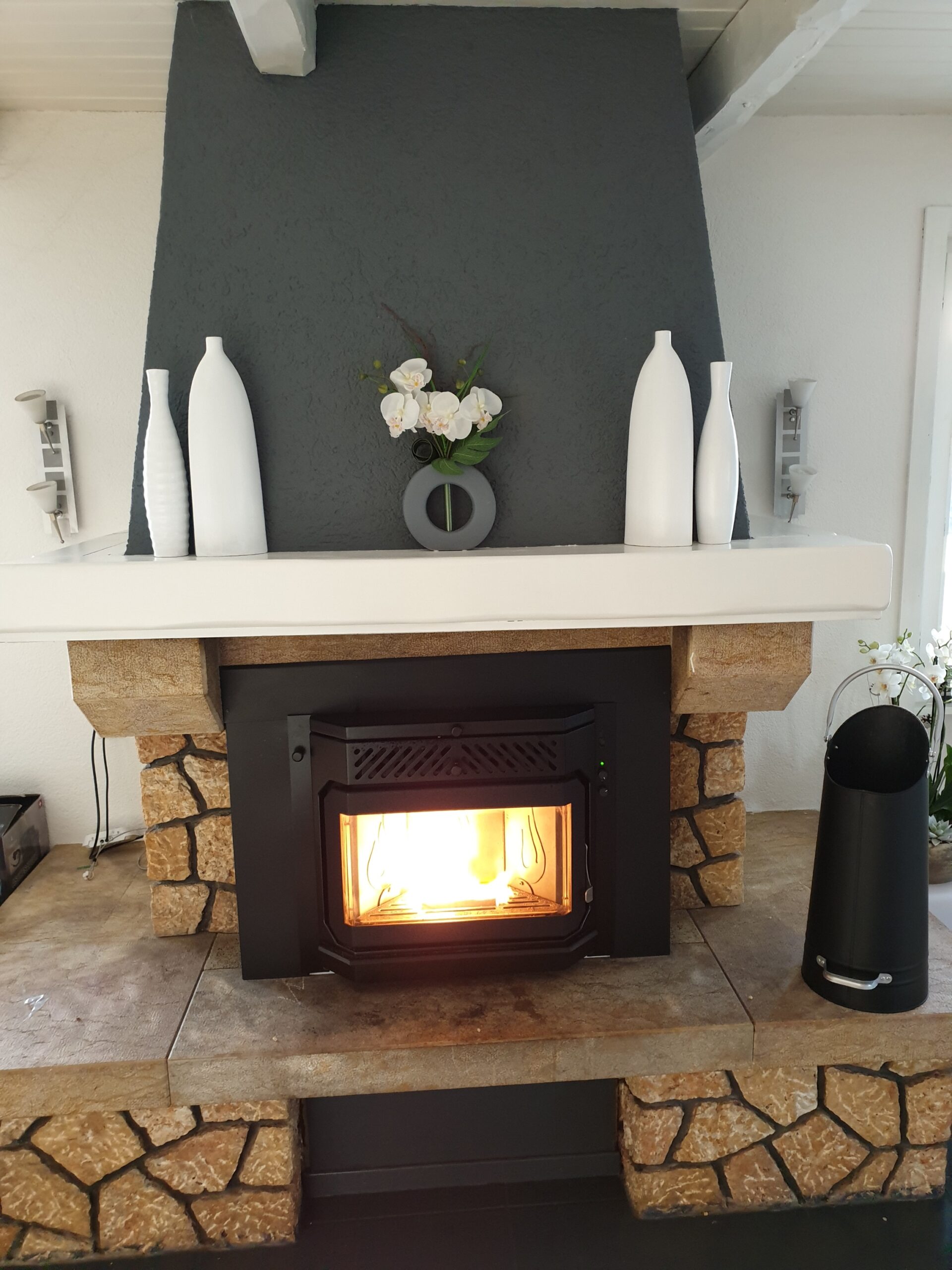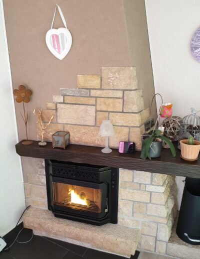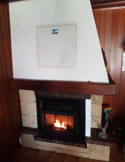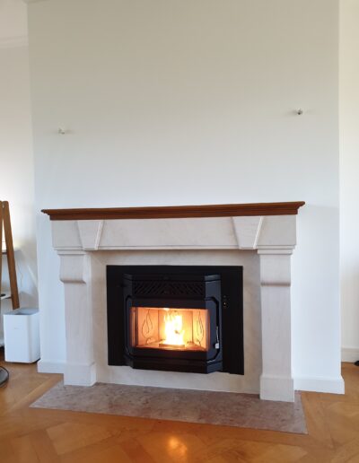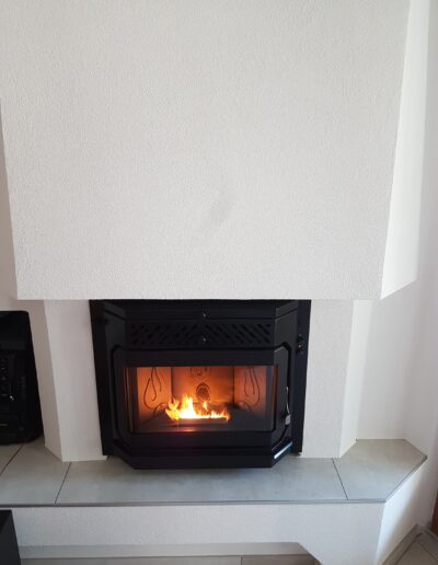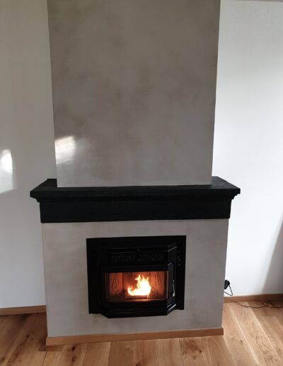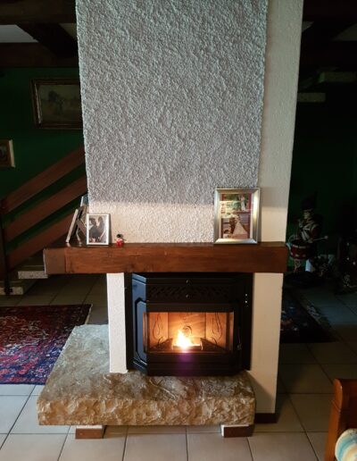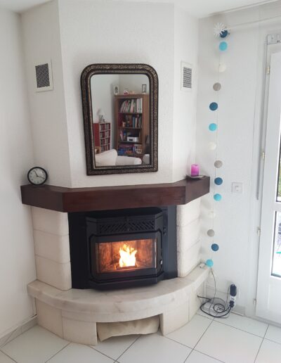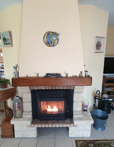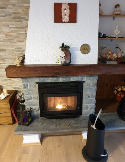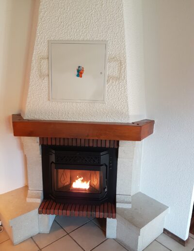 Après : Grâce à nos inserts à pellets et à un travail minutieux de finition, nous donnons une nouvelle vie à votre cheminée. Une transformation complète, qui allie performance énergétique, esthétique soignée et praticité au quotidien.