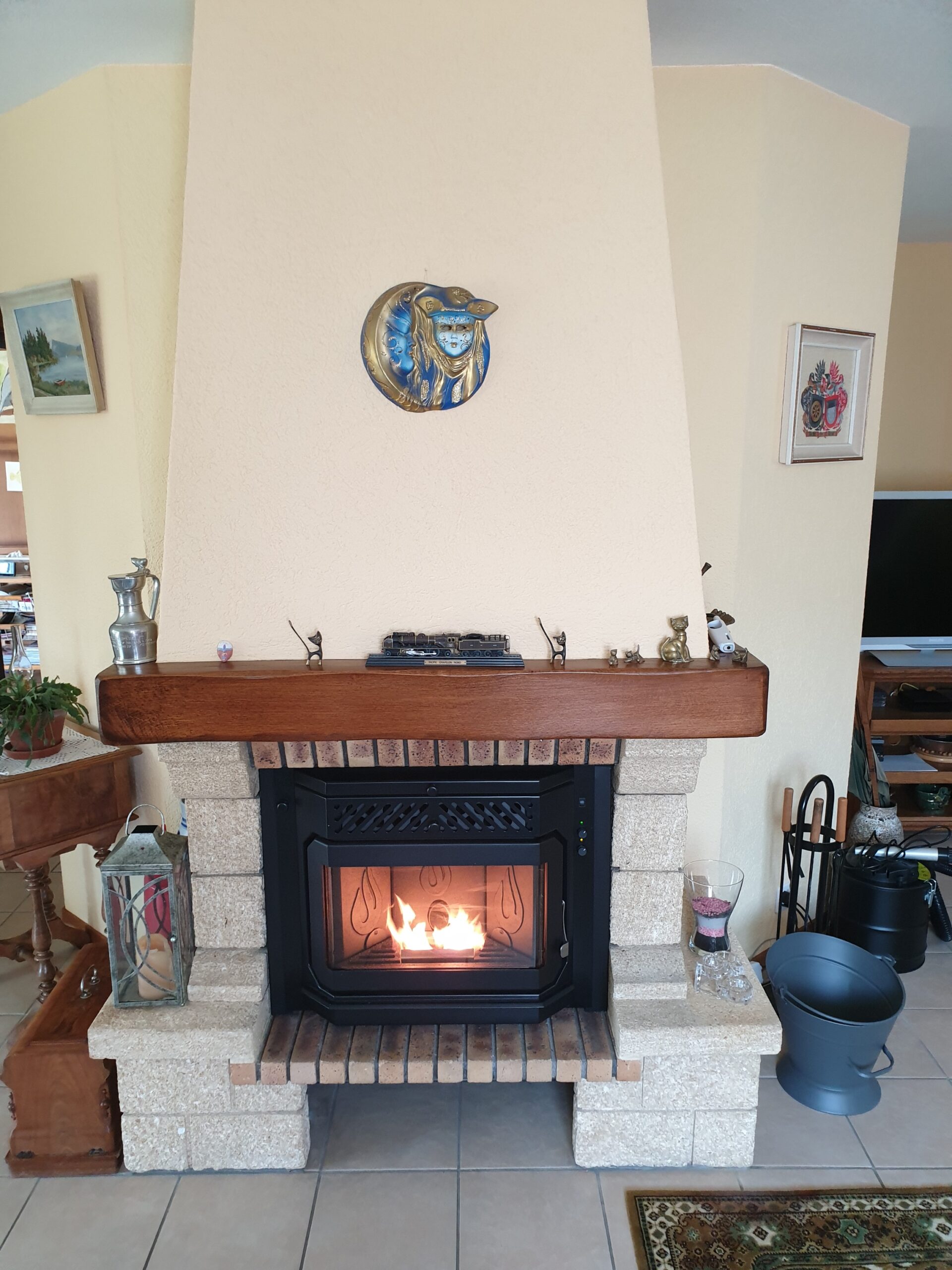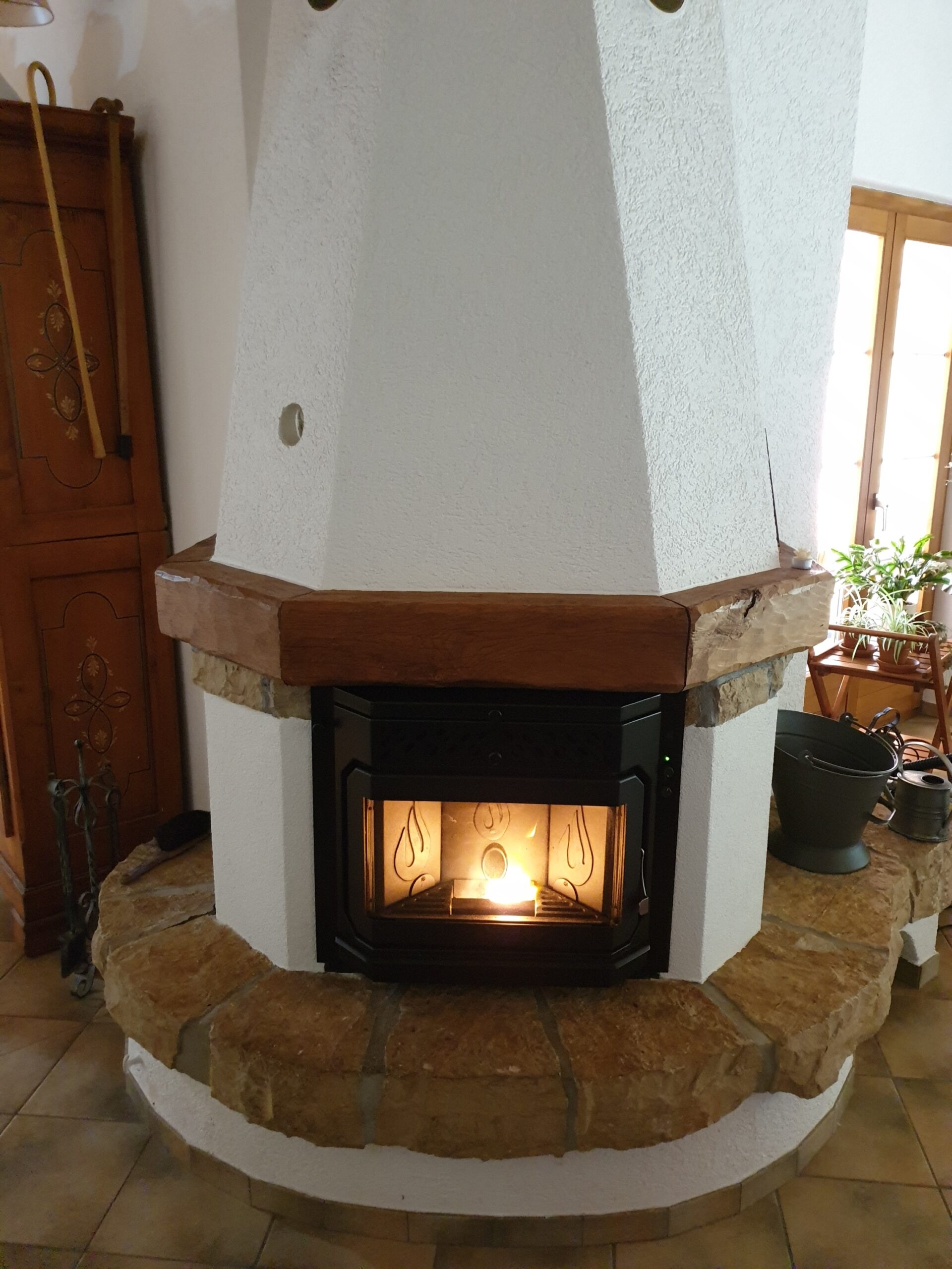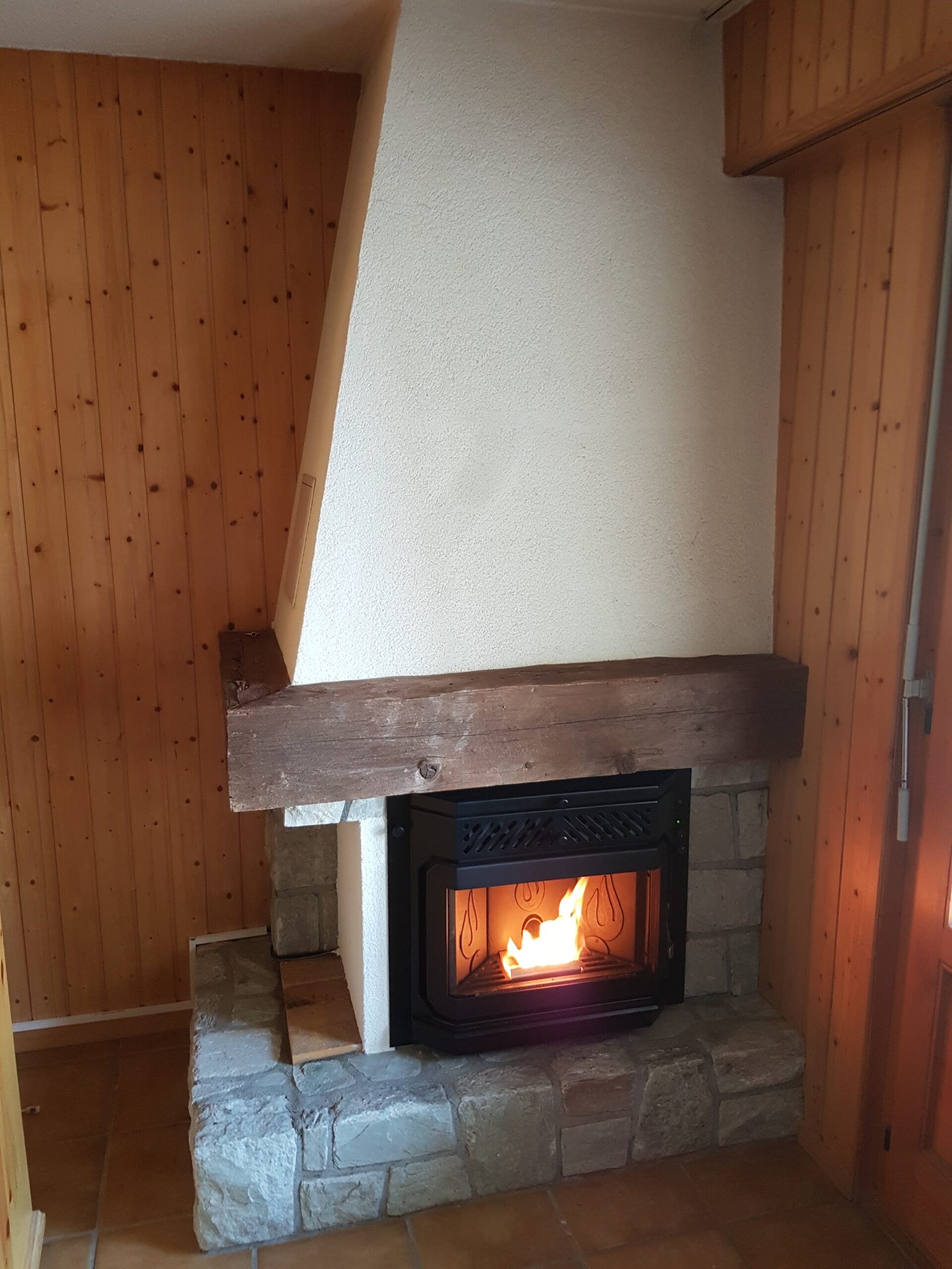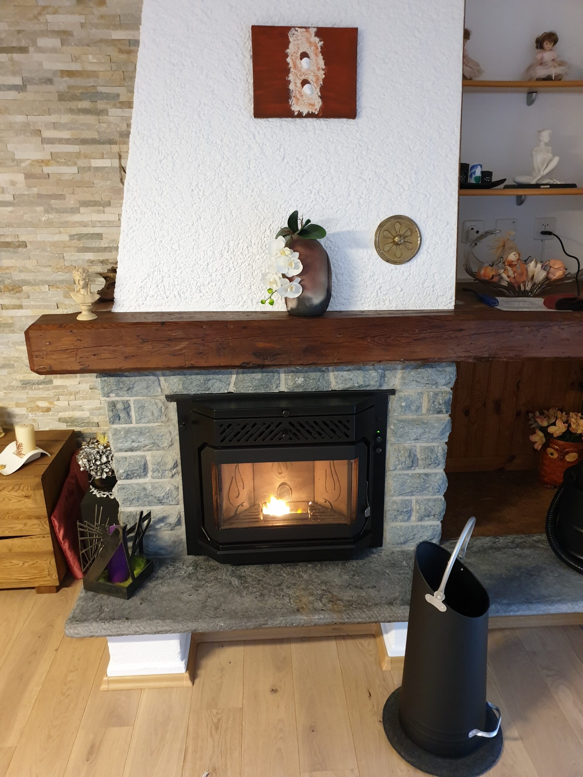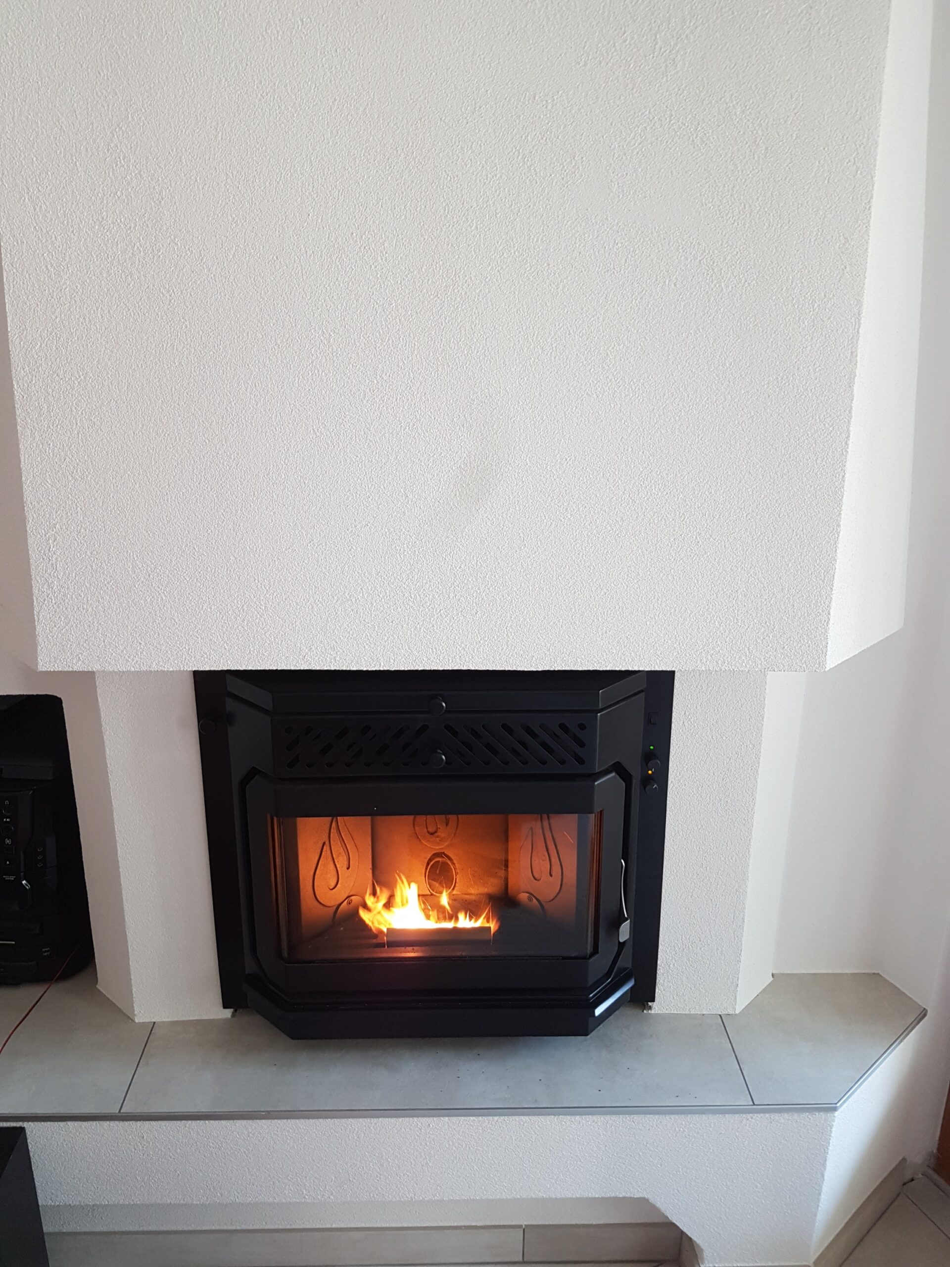 Après : Grâce à nos inserts à pellets et à un travail minutieux de finition, nous donnons une nouvelle vie à votre cheminée. Une transformation complète, qui allie performance énergétique, esthétique soignée et praticité au quotidien.
