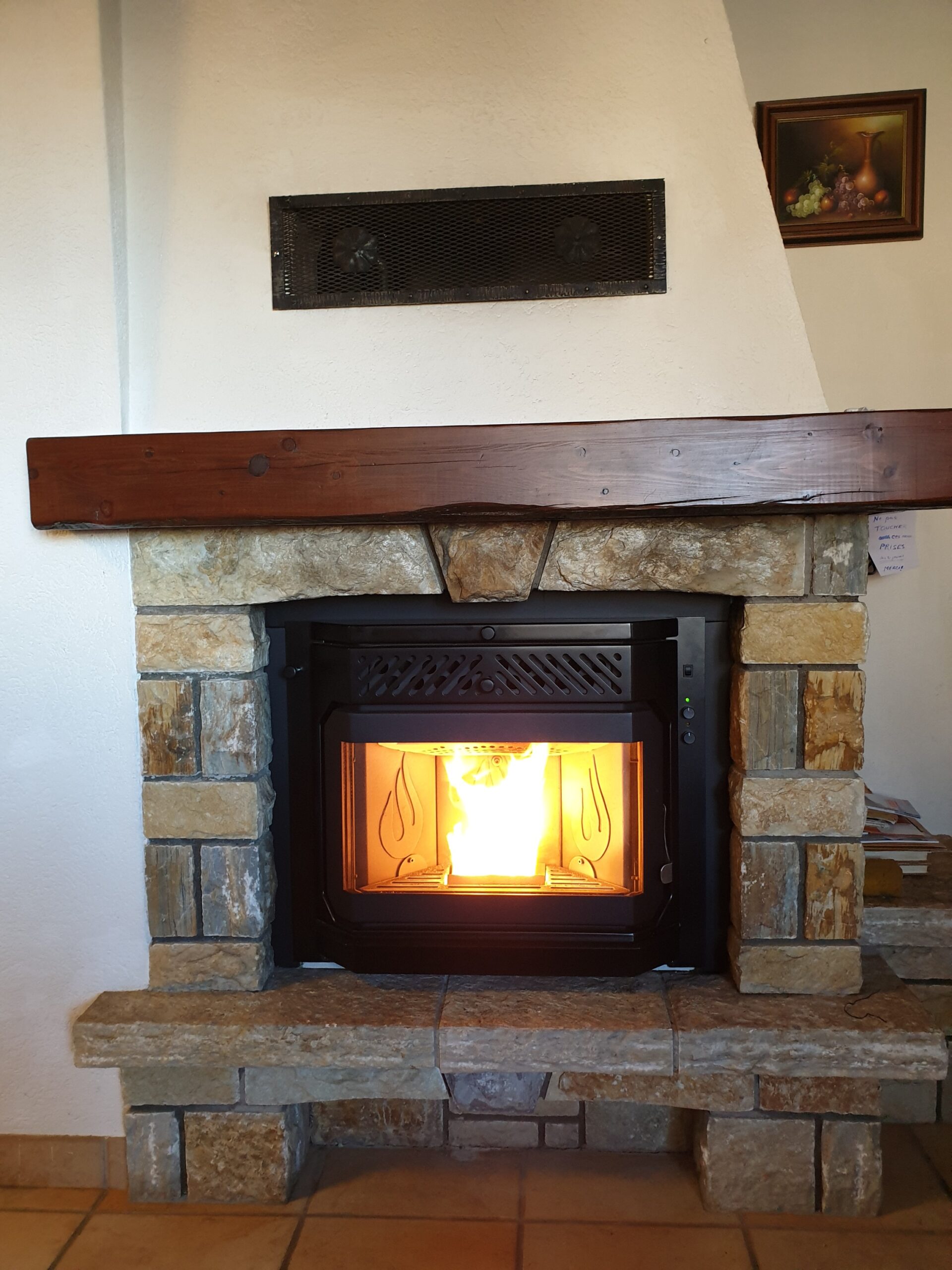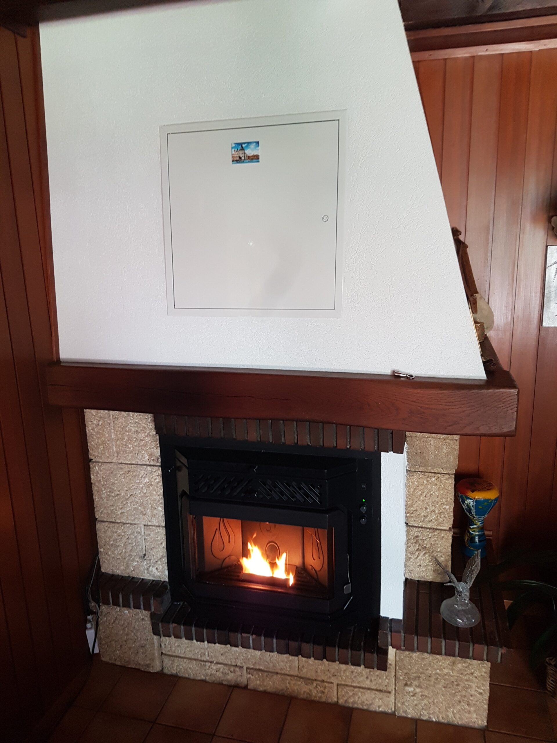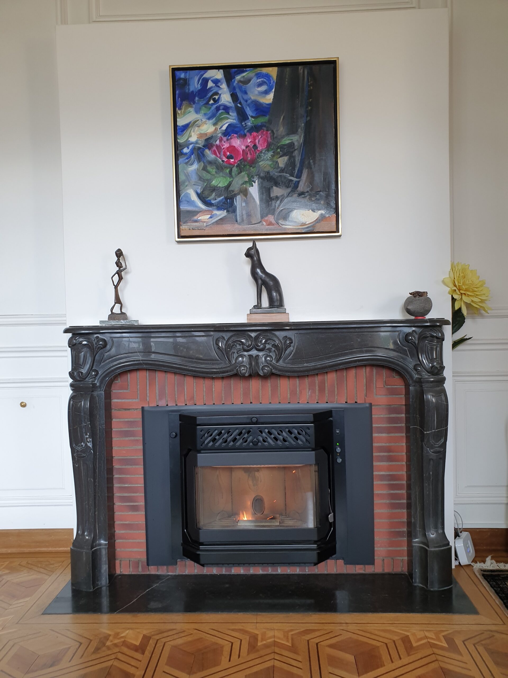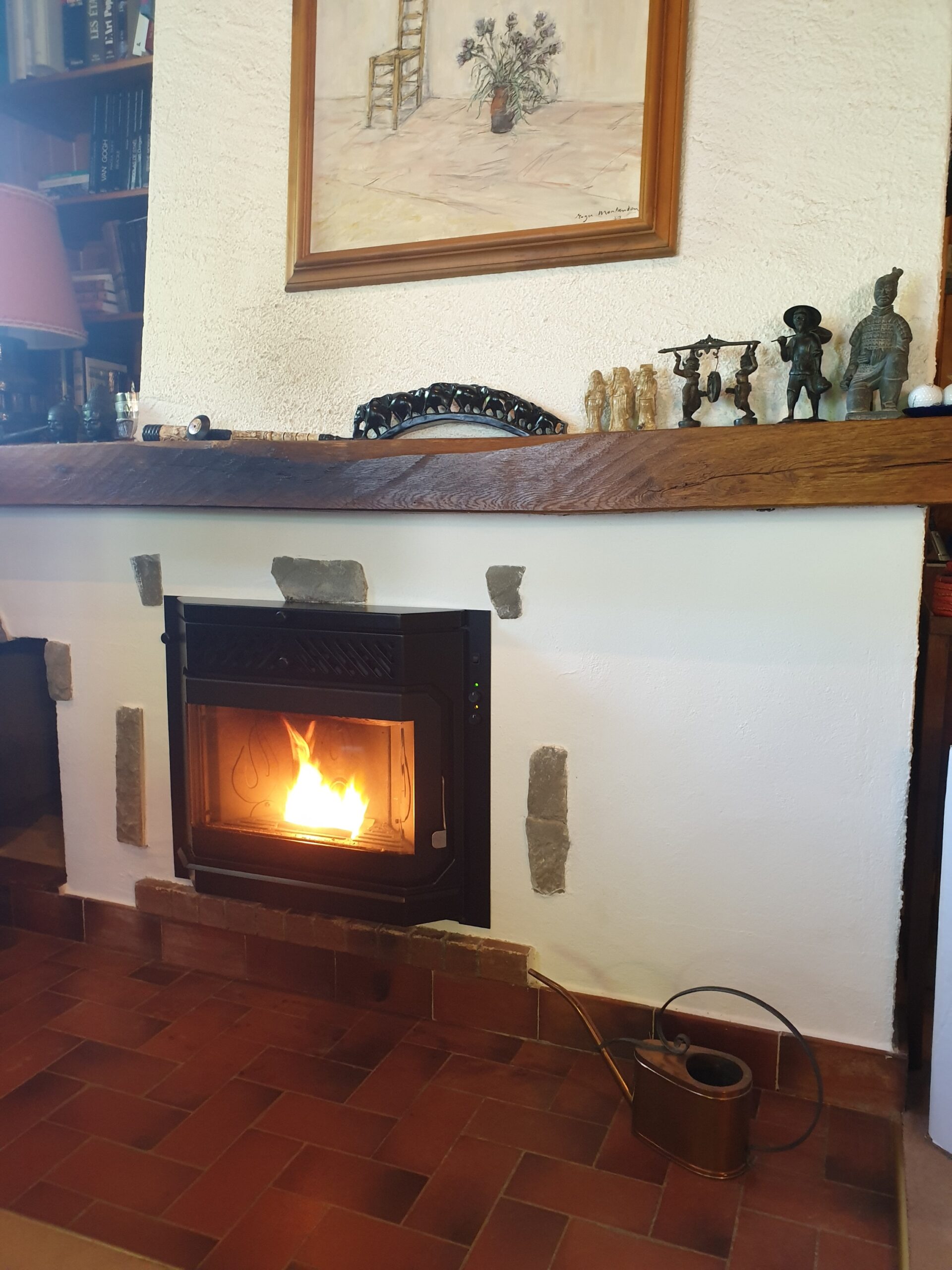 Après : Grâce à nos inserts à pellets et à un travail minutieux de finition, nous donnons une nouvelle vie à votre cheminée. Une transformation complète, qui allie performance énergétique, esthétique soignée et praticité au quotidien.