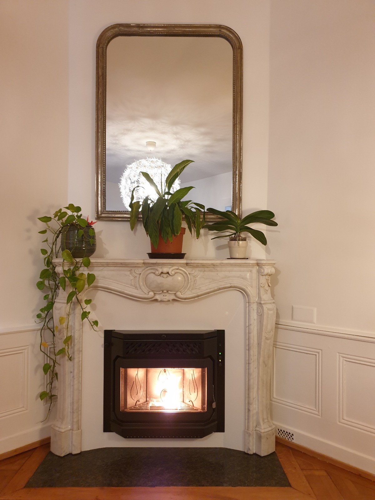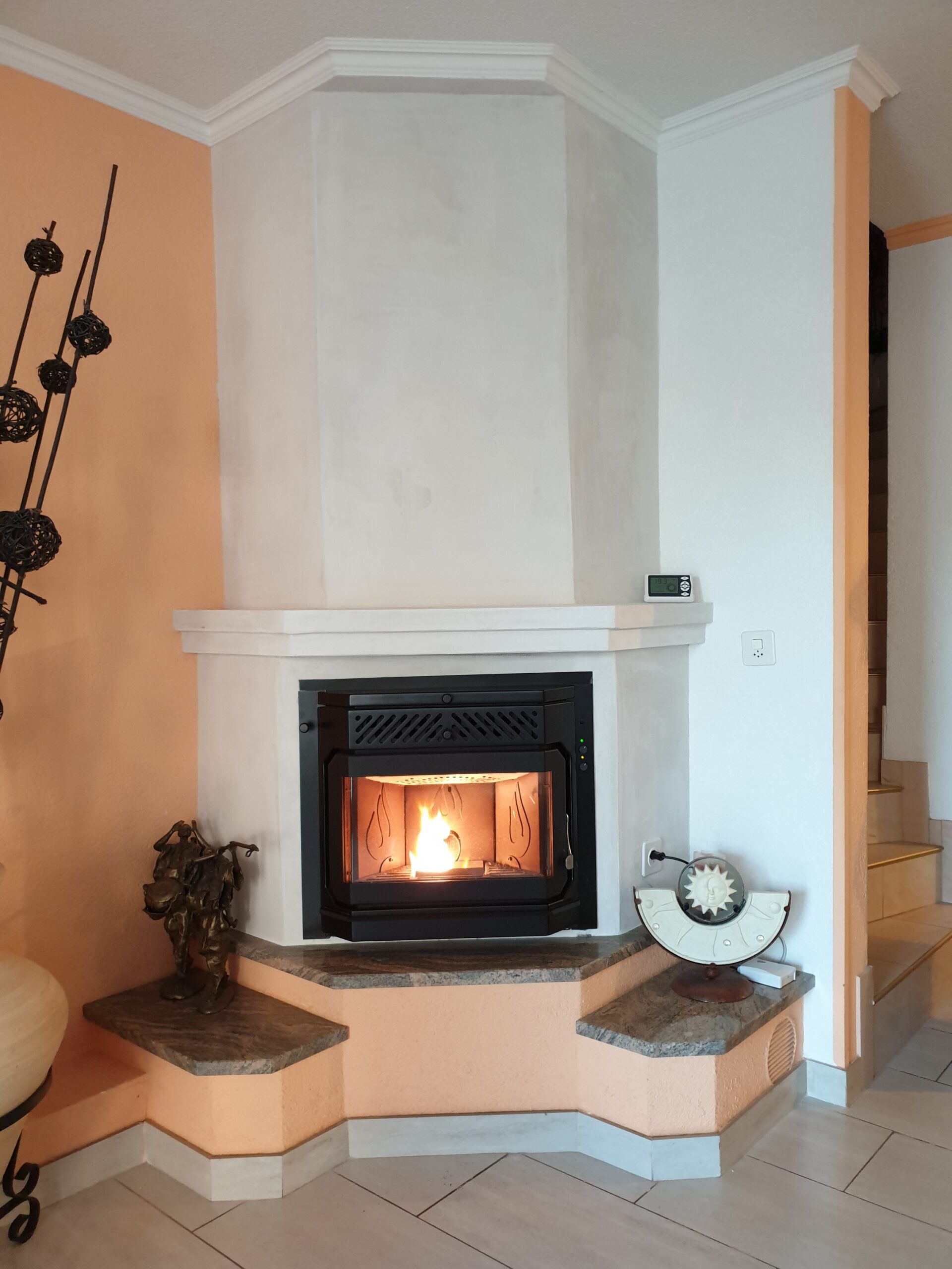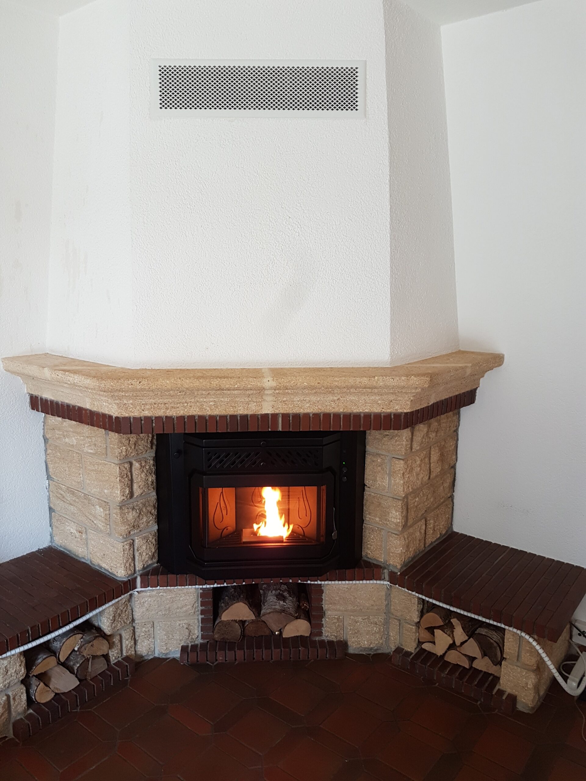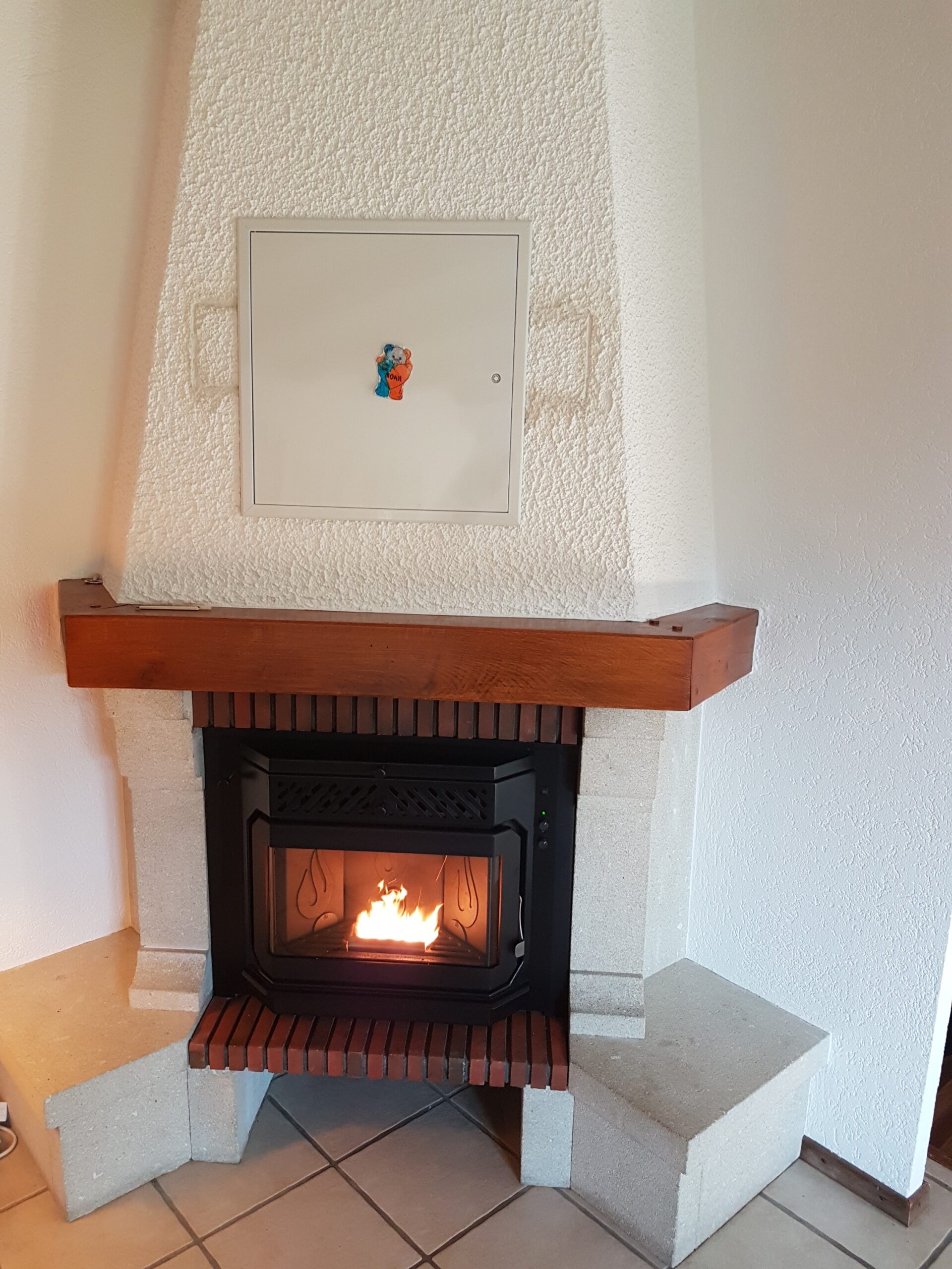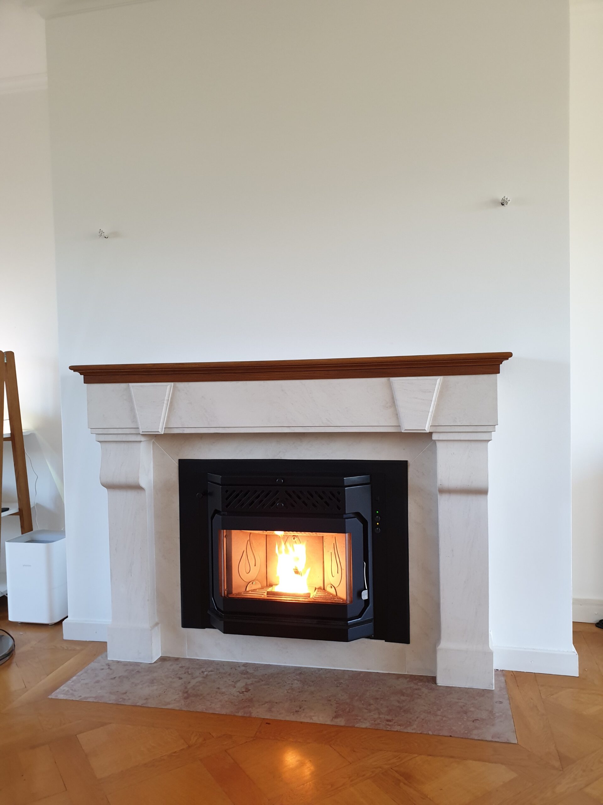 Après : Grâce à nos inserts à pellets et à un travail minutieux de finition, nous donnons une nouvelle vie à votre cheminée. Une transformation complète, qui allie performance énergétique, esthétique soignée et praticité au quotidien.